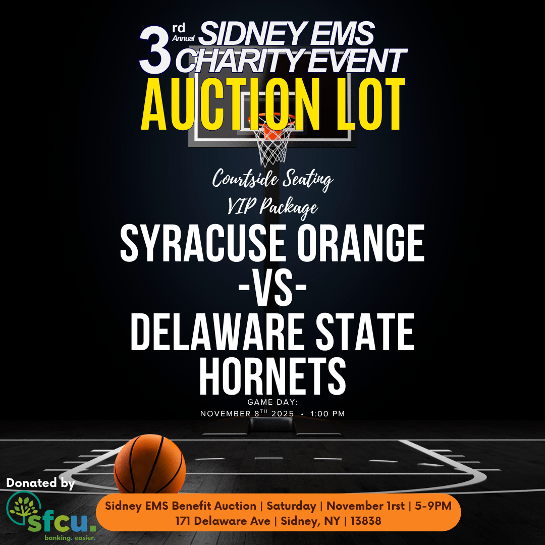 Sidney EMS answers over 2,000 emergency calls a year across Delaware, Otsego, and Chenango counties — often with limited staff and equipment. They rely on community support to maintain operations and ensure timely emergency response when it matters most.