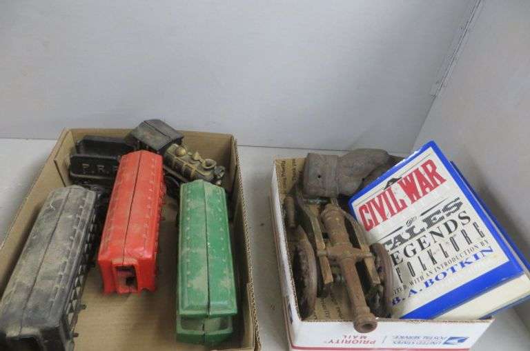 LOT 887 - Cast Iron Train, Wood & Iron Cannon, Brass Cannon, etc.