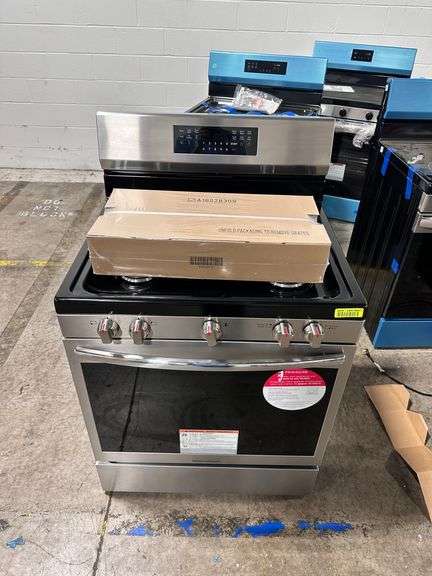 This gas range helps you save time in the kitchen with features like No Preheat and the powerful, 18,000 BTU Quick Boil Burner. small dent to lower left side